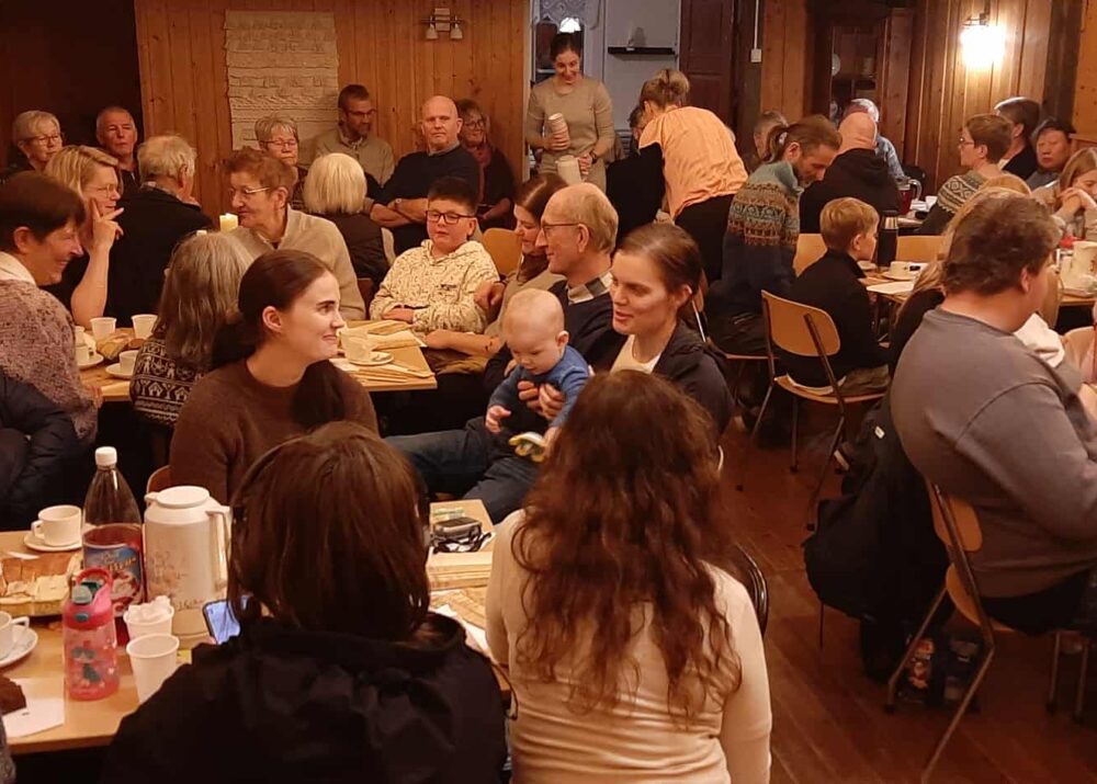 Kaffi, kaker og god drøs høyrer med på basar. Den populære basaren samlar folk frå fleire bygder. Mange med oppvekst og slekt i krinsen nyttar høve til å møtast.