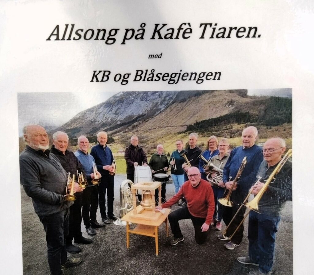 I morgon, tirsdag, kl. 12 og vel ein halvtime utover er det allsong med sommarlette songar på Kafe Tiaren i Gamleskulen i Uskedalen. Kristian og blåsarar frå musikklaget leiar an i songen. Velkomne til god sommar stemning, billeg og god mat og god drøs.