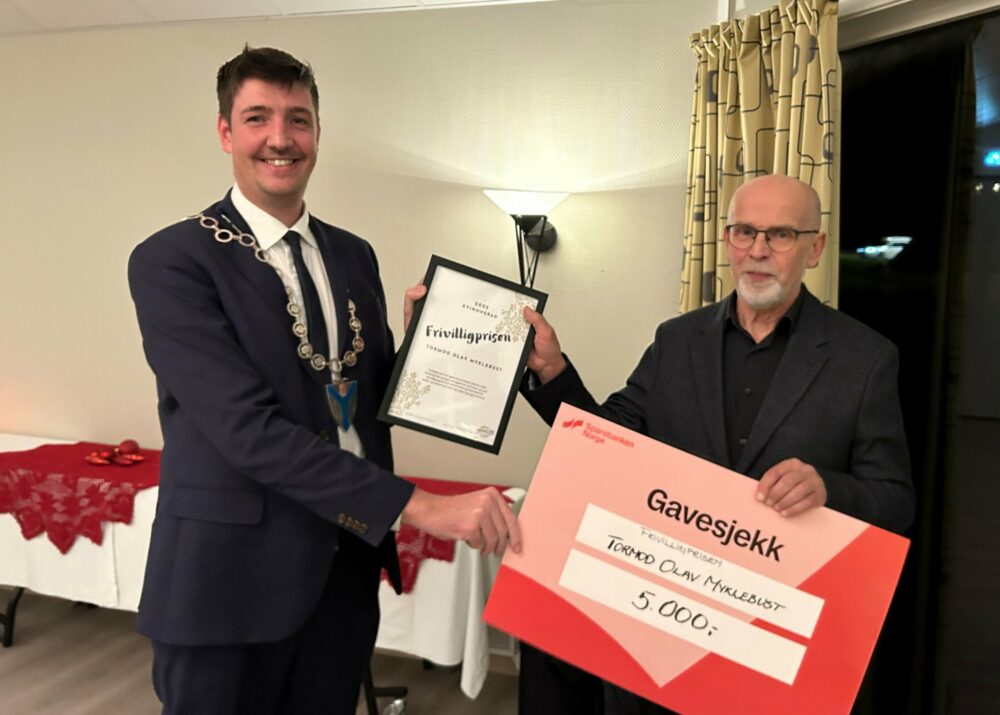 Tormod Olav Myklebust får Årets frivilligpris i Kvinnherad kommune for sin ekstraordinære innsats, sitt store hjarte og sitt langvarige humanitære arbeid. Han er ein sann representant for frivilligheitens kjerneverdiar og eit førebilete for oss alle.
