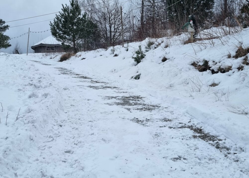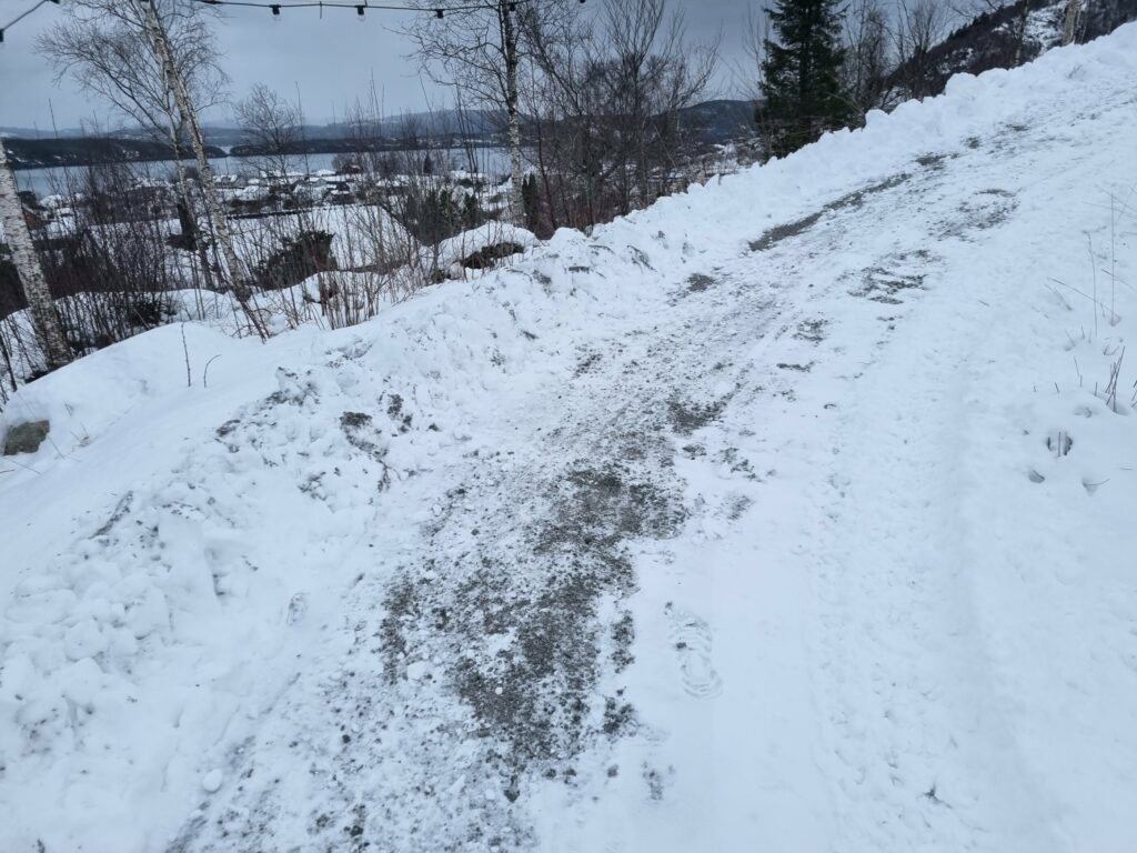 Då turvegen vart bygd for vel fem år sidan, tok ein høgde for framkomst med ATV og liten traktor. Det vart gjort for nyttetransort som vedhøgst, grusing og anna naudsynt transport. Snøbrøyting vart det vel neppe tenkt på. No er det prøvd med godt resultat.