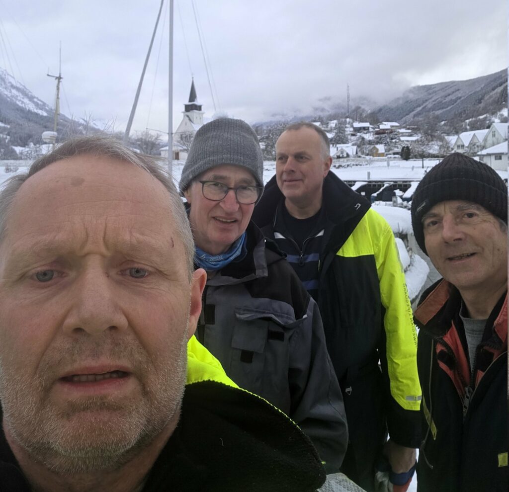Me starta med måking kl 8 og kl 16 var siste utliggar på plass oppå brygga. Vidar Eidsvik hjalp til med å flytta båtar frå flytebrygga til innenfor moloen på flytebrygga der. Dei som var med på jobben var: Bjørnar Bergstø (MOWI), Leif Jarle Bergstø (UB), Rolf Myklebust (UB) , Harald Koløy (UB og Jostein Hauso (UB).