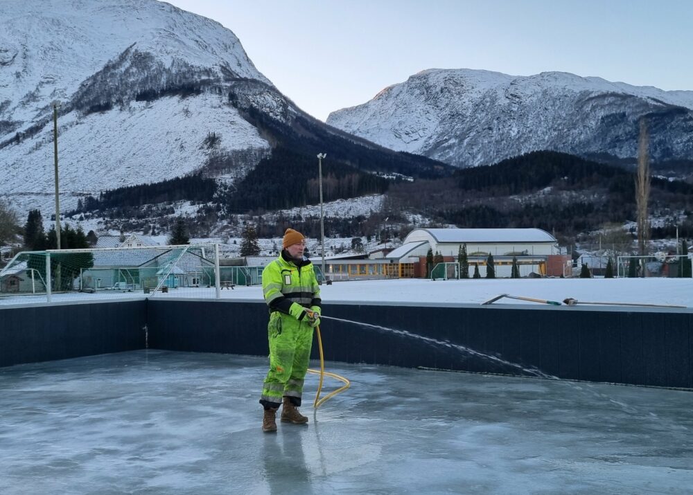 Islegging i ballbingen pågår. Dersom alt går etter oppsett plan, kan det vera ferdig is til bruk i løpet av dagen i dag, sundag 4. januar. Per Korsvold er i arbeid med klargjering. Finn fram skøyter, helst av typen bandy. Med fullmåne og lys kan det bli stemningsfullt. Fylg med i neste bolk.