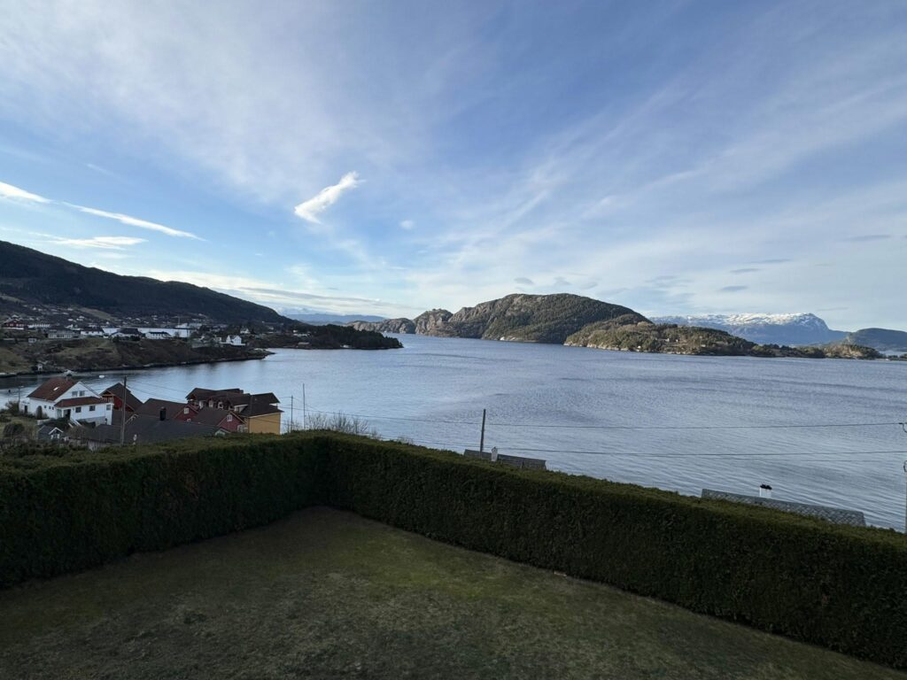 Halsabrotet 103 kjem for sal. Velhalde hus, dobbel garasje og utestove med panoramautsikt.