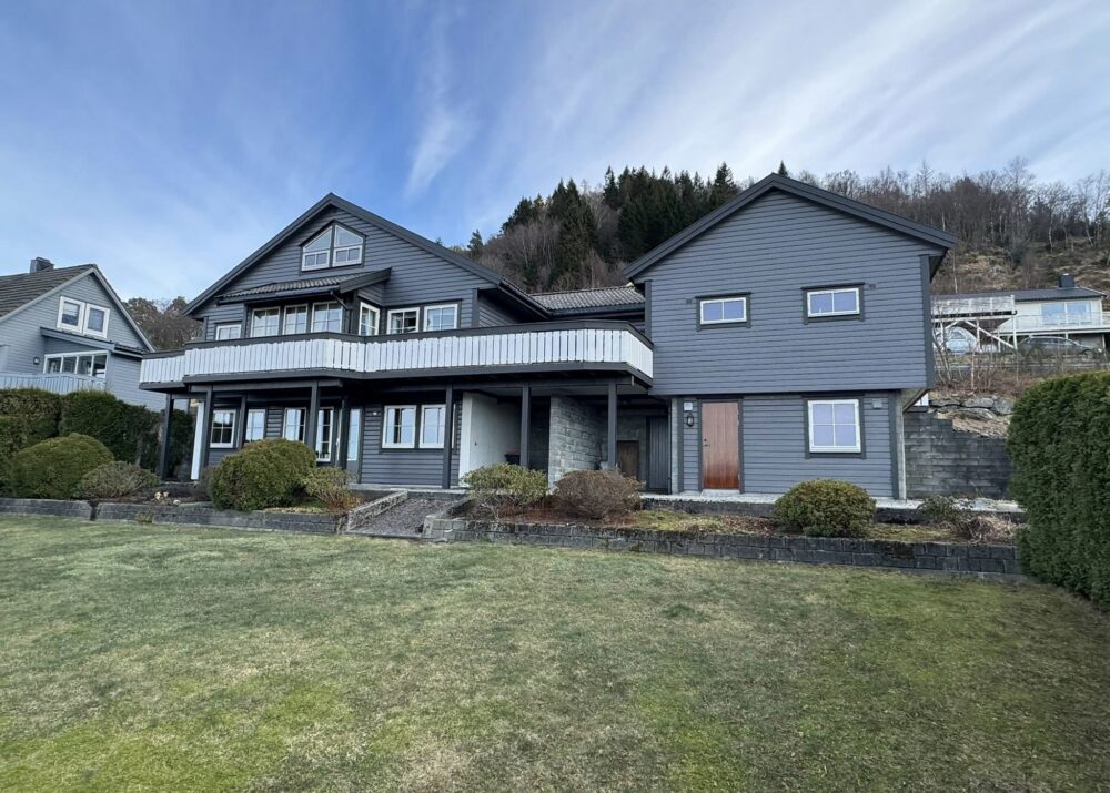 Halsabrotet 103 kjem for sal. Velhalde hus, dobbel garasje og utestove med panoramautsikt.