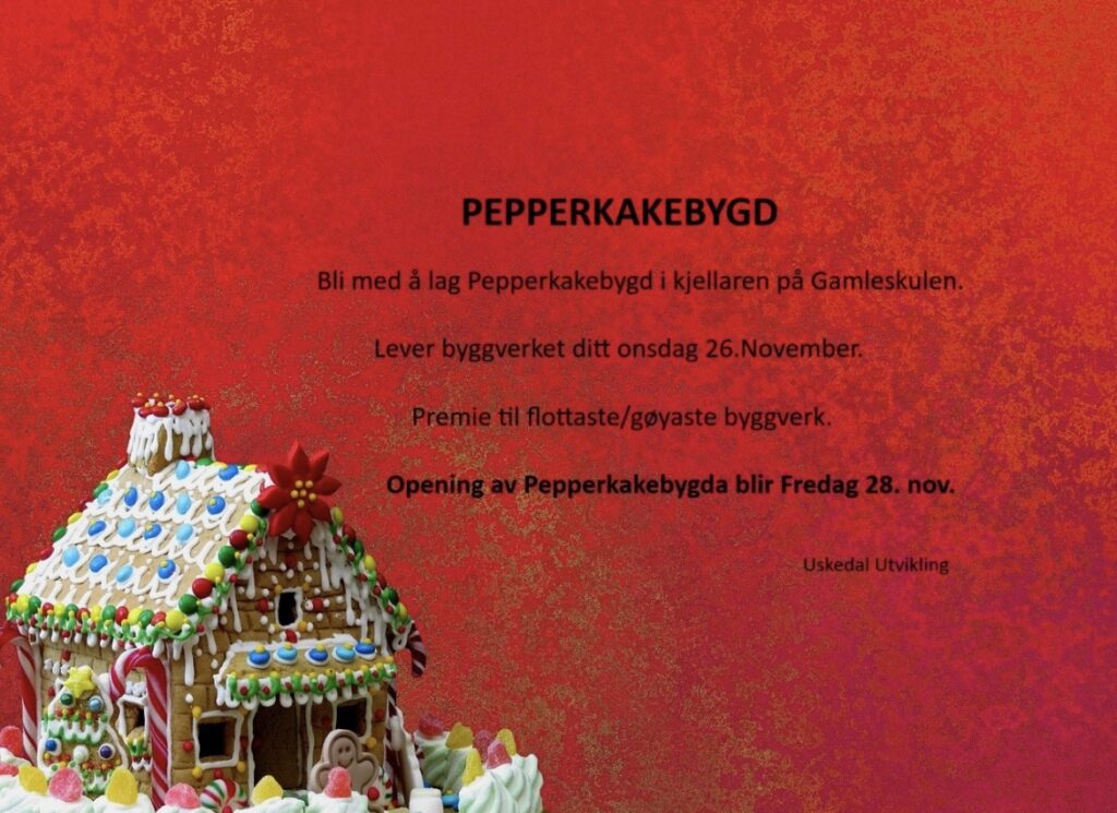 Innlevering til Pepperkakebygd i morgon, onsdag, i Gamleskulen.