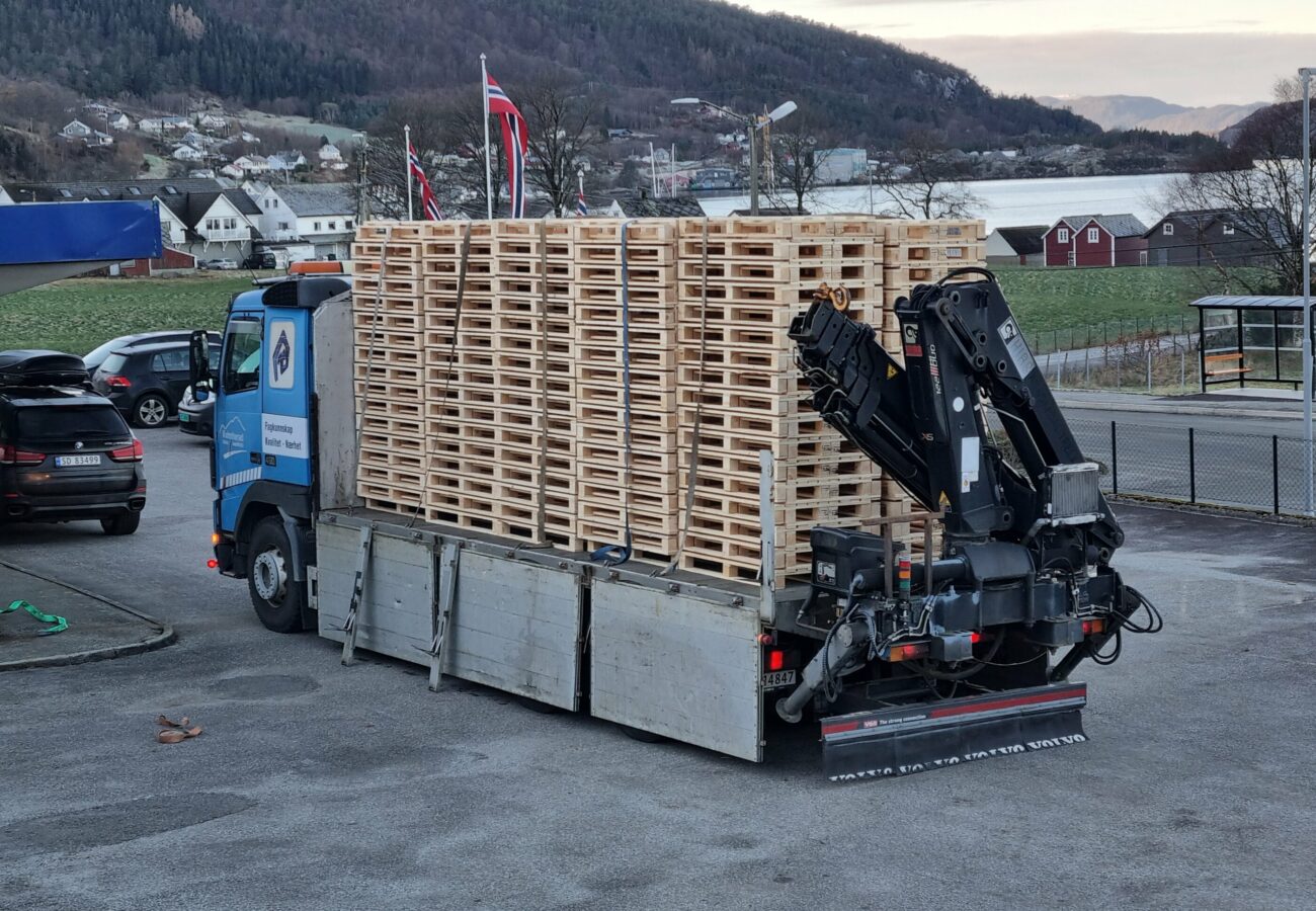 Stor palleproduksjon og leveranse kvar veke til Vikingfjord på Sunde.