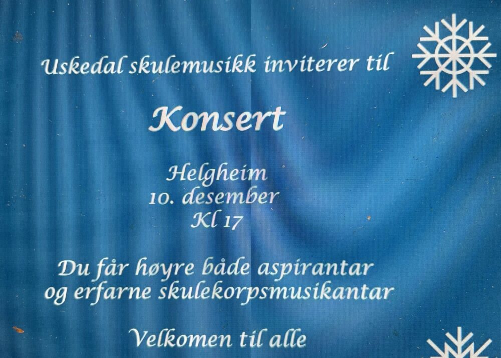 Me minnar om at i dag kan du få høyre skulemusikken og aspirantane då dei skal ha konsert i Helgheim kl 17. Alle er velkomne!