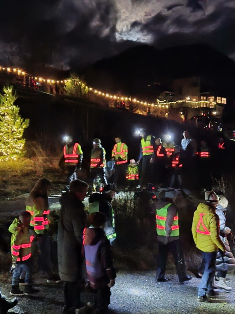 Det aula med folk med og utan hovudlykt. Nokre hadde med vanleg lykt. Med Børsdalsnissen i front med fjøslykt gjekk alle i lang rekke frå Grano til toppen av Skårhaug der det var stopp for å leggja teikningar, juleynskje og brev til Nissekassen. Nøyakig kl. 17.15 vart straumen sett på den nye ljosrekkja, 100 meter lang rundt toppen.