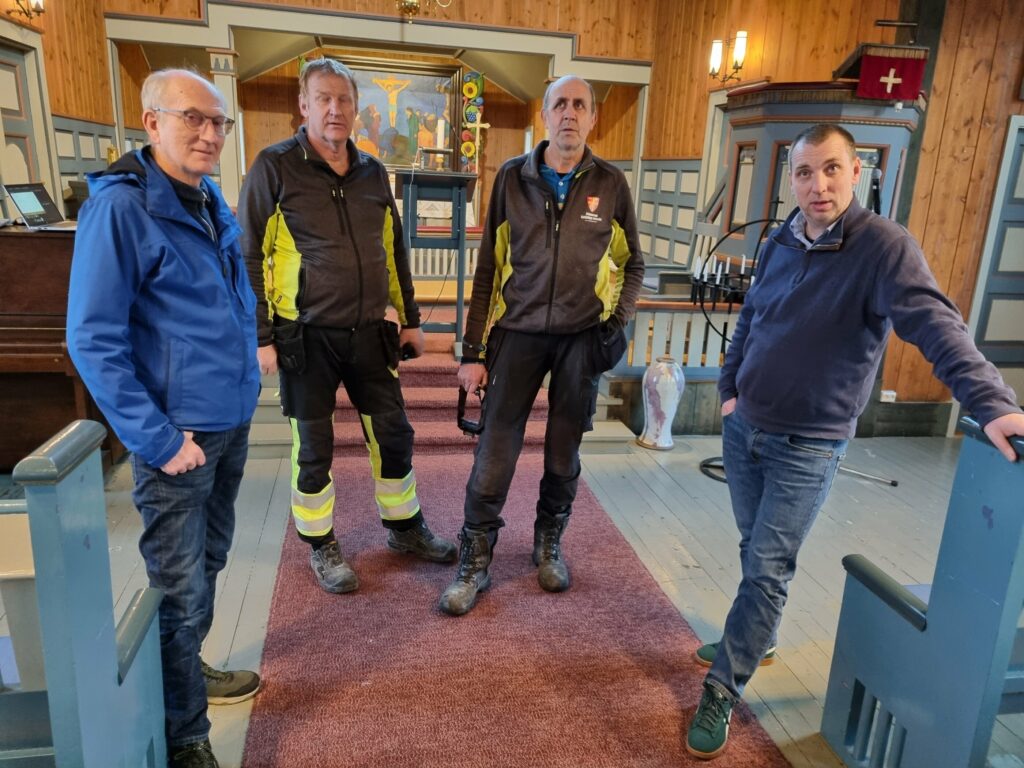 Sentrale personar samla til presseinformasjon i dag. Kyrkjeverje Torstein Aarthun saman med verneombod, driftsleiar kyrkjer og soknerådsmedlem.