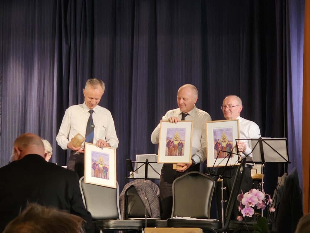 - Opningsnummeret gav ein pangstart i følgje Uskedalssida. Det var litt tilfeldig og delvis planlagt. Tidlegare dirigent Per Olav Paulsen frå Sagvåg hadde fått greie på at vi skulle spela ein god del musikk som han hadde laga. Dette var truleg grunnen til at han dukka opp Helgheim om lag eit kvarter før start. Han er opphavsmann til Jubilant March som var opningsnummer. Kjappe hjerneceller tenkte då: Kva om Per Olav dirigerte den? Etter å ha tenkt seg litt om, sa han ja, og dei fleste musikarane fekk vita det før dei kom på scenen.