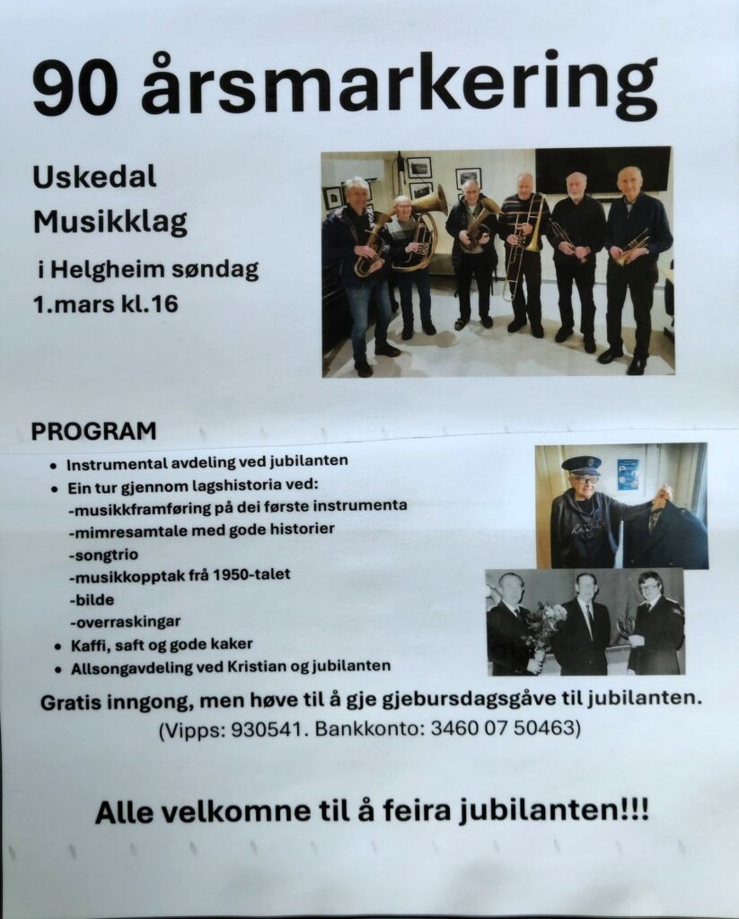 Den 1.mars er det nøyaktig 90 år sidan Uskedal Musikklag vart skipa.