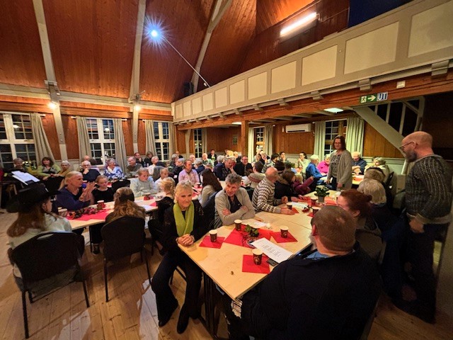 Mykje folk og god stemning på korkafe i Helgheim.