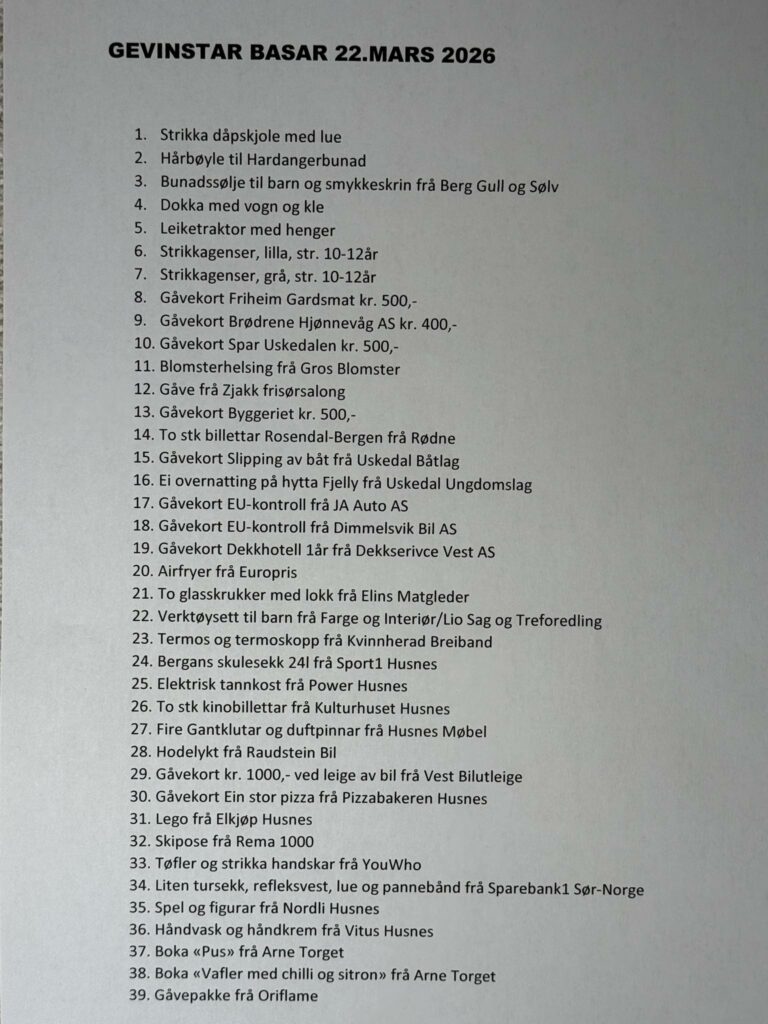 Sel lodd til helselagsbasaren fredag/laurdag i denne veka og neste helg - i Glashuset på SPAR.