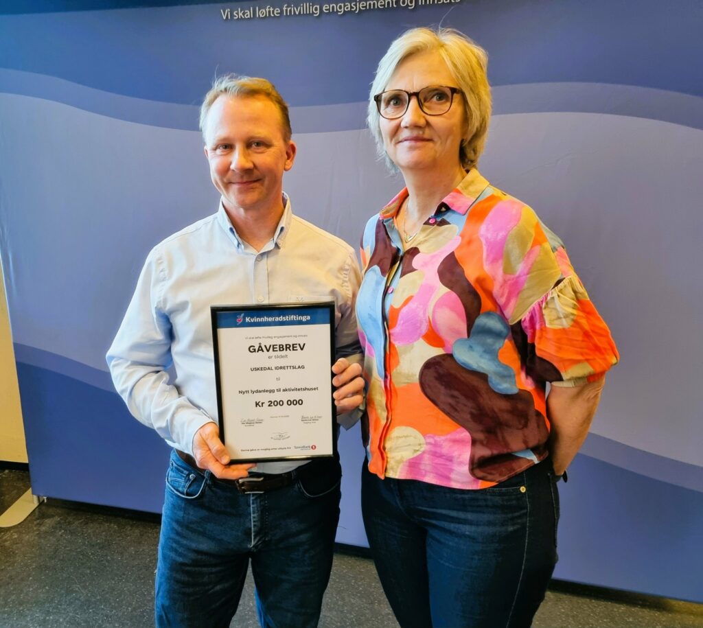 Uskedal Idrettslag: Gåve til nytt lydanlegg og til kostemaskin.