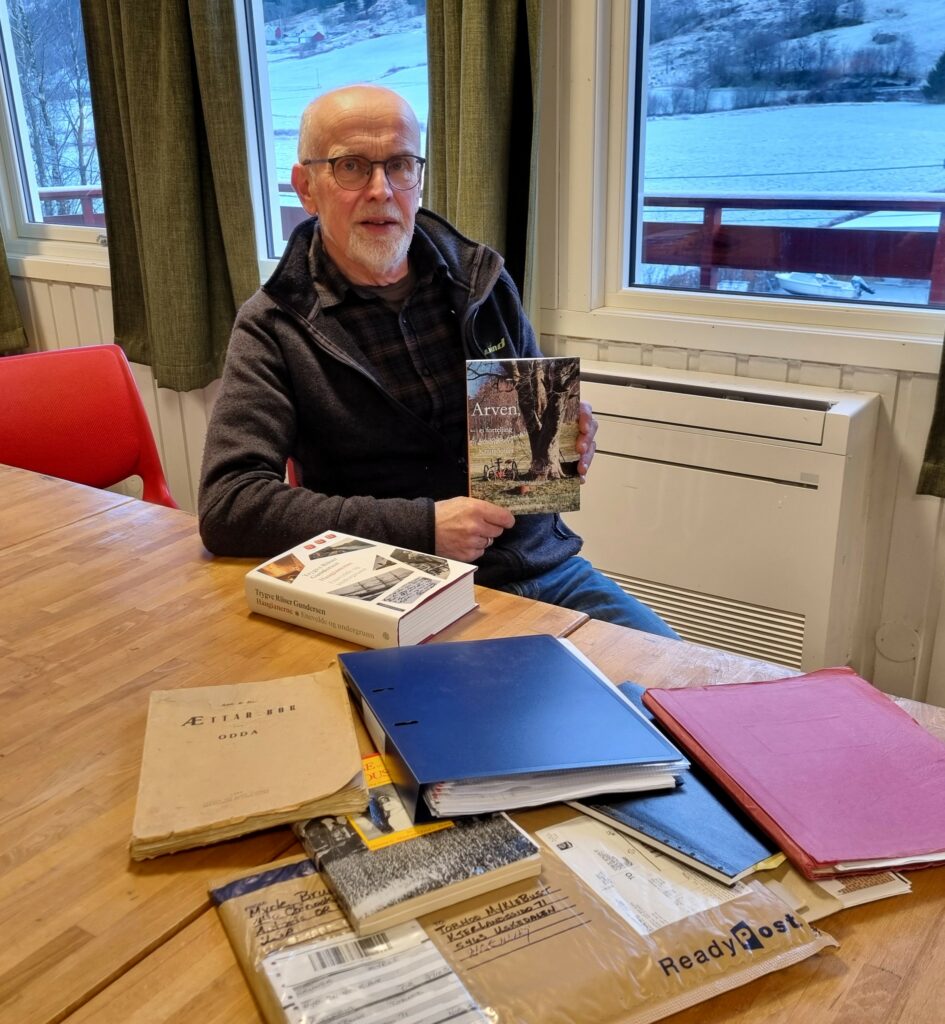 Tormod syner fram litt av kjeldegrunnlaget for boka.