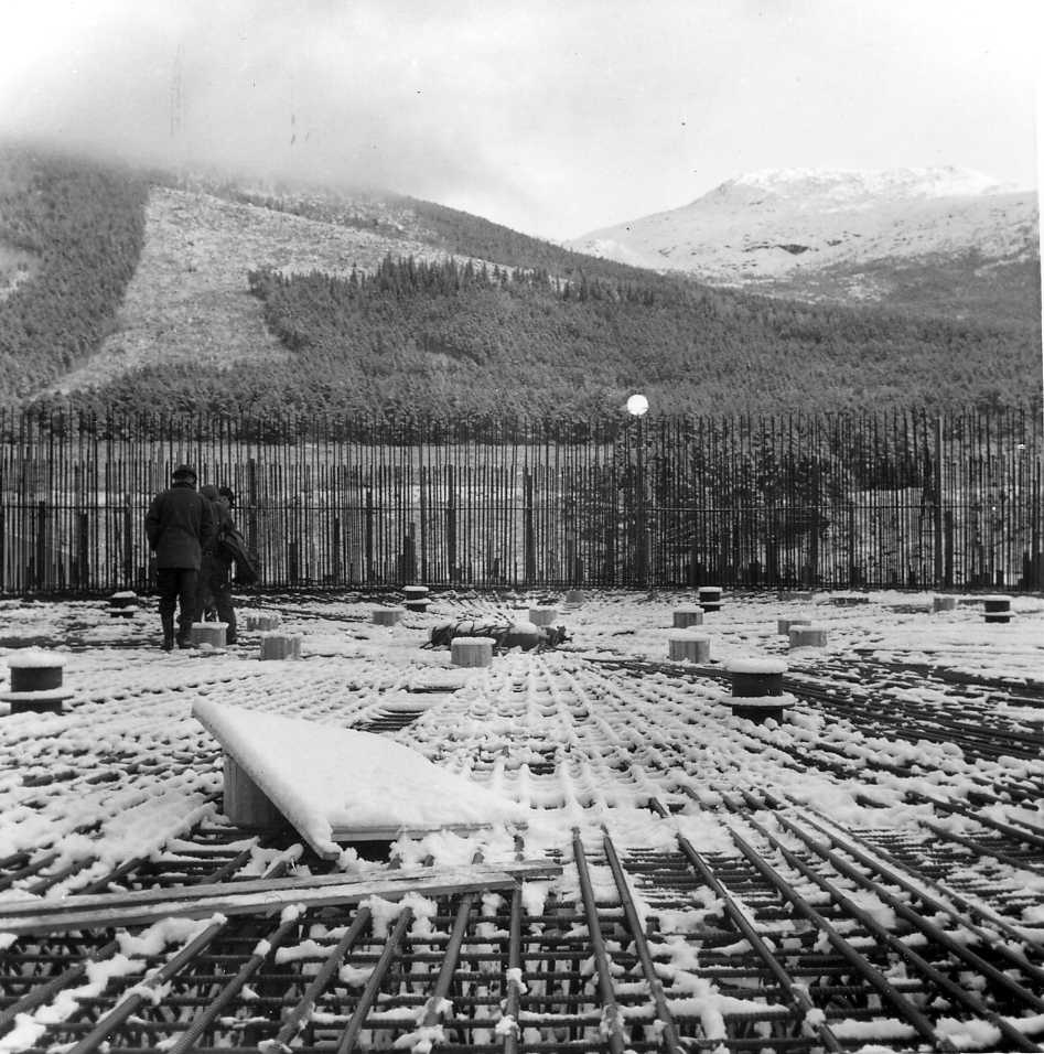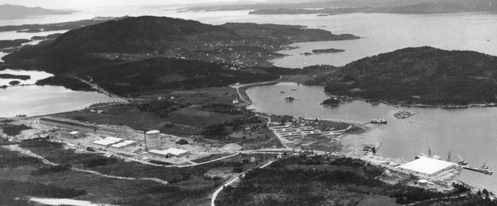 Biletet på topp syner A-hallen og Støyperiet under bygging. Sjå brakkerigg og losjiskip! (Bilete frå Søral)