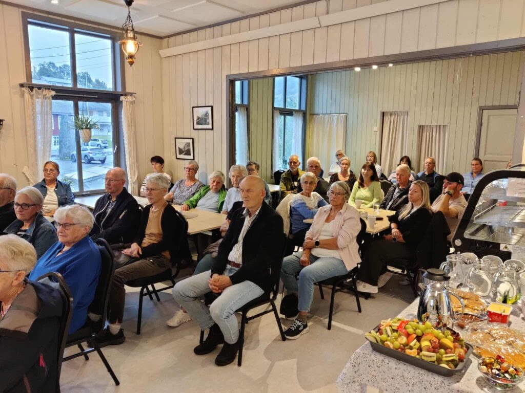 Etter møtet vart det servert nysteikte lappar, frukt, te og kaffi, og publikum tok seg tid til både noko godt å ete og ein hyggeleg prat.