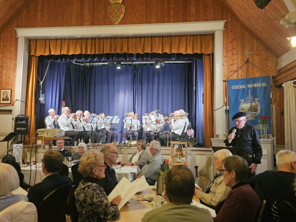 Uskedal Musikklag er på alle høgder. Pangopning.