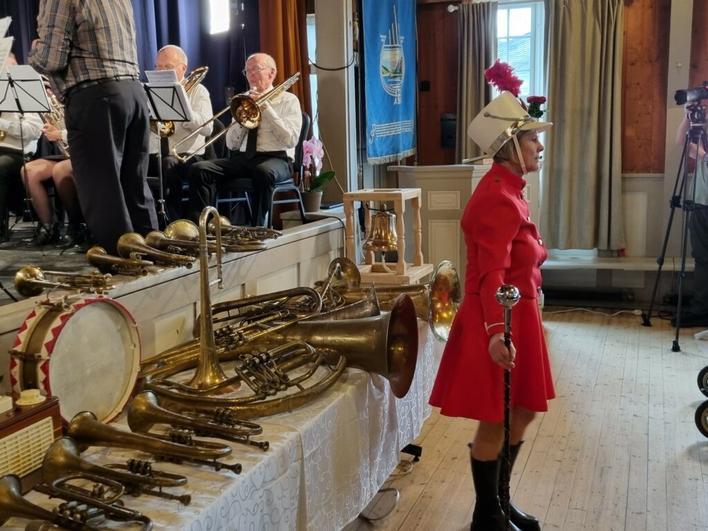 Eit av høgdepunkta var ei pangopning med Jubilanten, marsj dirigert av komponisten Per Olav Paulsen frå Sagvåg, Ikkje nok med det. Kjersti Nilsen Børve overraska alle i salen då ho stod fram som tamburmajor. Tambur er ein som leiar militærmusikken. Ho var bestemt. Blåste av og bad korpset starta på nytt.
